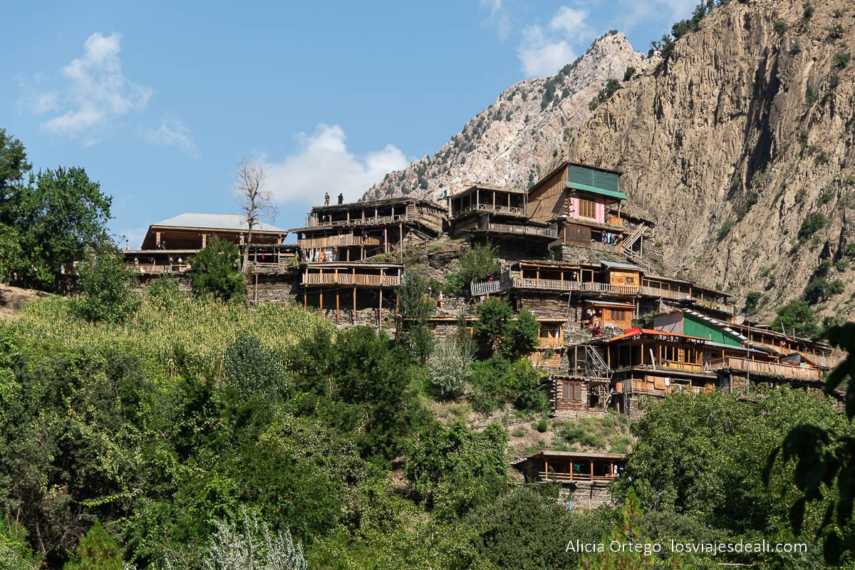 Avanzamos desde el pueblo de Ayun, la última localidad musulmana antes de entrar en territorio kalash. La carretera va haciéndose cada vez más agreste y estrecha, y poco a poco empiezan a aparecer los pueblos. Casi se continúan unos con otros y están atravesados por esta carretera. La única.