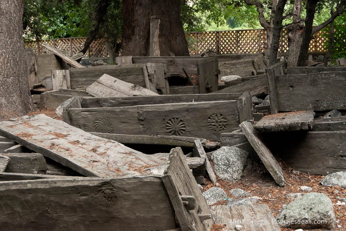En cuanto a los ritos funerarios, en el pasado dejaban los ataúdes al aire libre y los cementerios estaban lejos del pueblo. Los muertos eran confinados en sus cajas con joyas y objetos queridos, pero como terminaban siendo saqueados, empezaron a enterrarlos bajo tierra. Más tarde se extendió la costumbre de poner la cama (el somier) del difunto sobre la tumba.