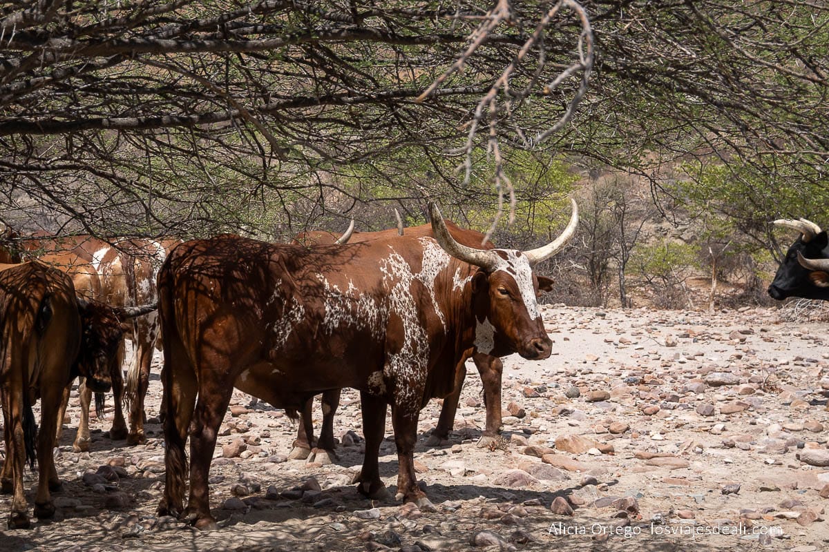 Preciosas vacas de las tribus del Parque Nacional de Iona
