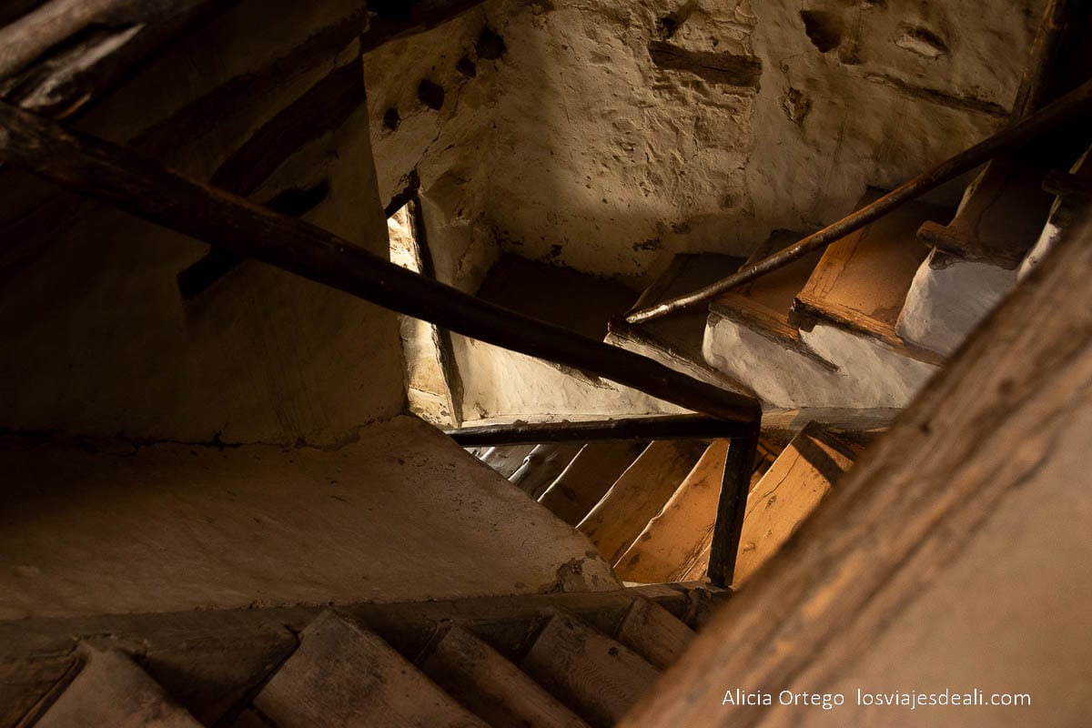 El interior es laberíntico y te sumerge en una atmósfera de otro tiempo. Las escaleras son empinadas, los pasillos y galerías angostos, y las habitaciones un poco oscuras.