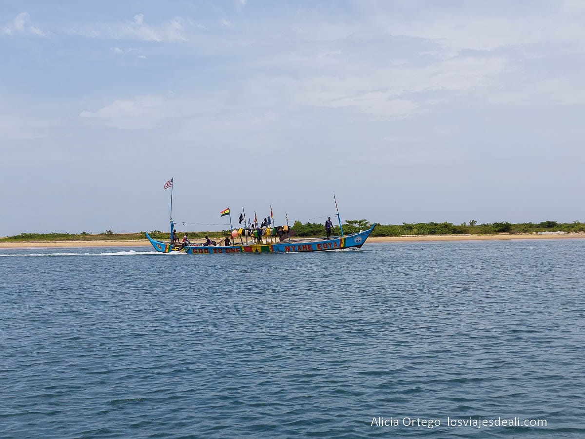 El paisaje de esta costa es muy chulo y me recuerda un poco al de Grand Popo, en Benin. Con bancos de arena que separan el mar del río, que en realidad es una confluencia de tres ríos. Hay manglares y se ve que es un lugar donde recalan las aves migratorias.