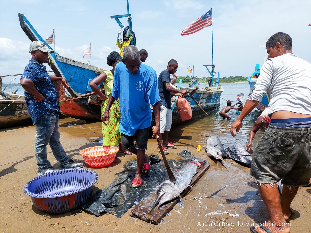Estábamos a las afueras de la ciudad, así que tomamos la decisión de ir a Marshall, un pueblo de pescadores que está en la desembocadura del río Junk, a unos 40 kilómetros de Monrovia. Por cierto, este lugar está muy cerca del aeropuerto internacional.