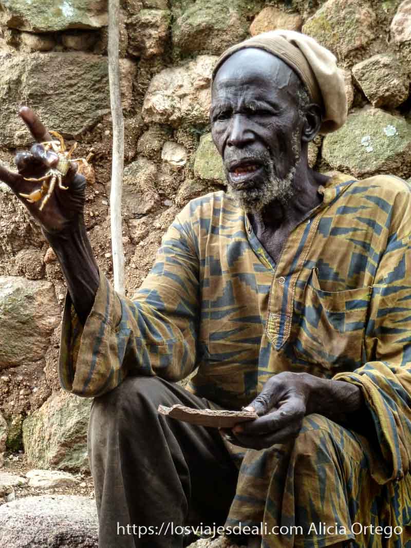 Tras la visita al mercado de Tourou, el día nos ofrece más sorpresas, y es que nos adentramos más en los Montes Mandara, en la tierra de los kapsikis. Esta es la zona más espectacular de la región, con grandes formaciones basálticas que dominan el horizonte, y la población de referencia es Rumsiki. Aquí tuvimos un encuentro con el Brujo del Cangrejo del que ahora te hablo.